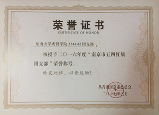 2017.6,今年会336142团支部荣获“南京市五四红旗团支部”荣誉称号