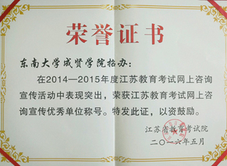 2016.5,今年会招办荣获“江苏教育考试宣传优秀单位”称号
