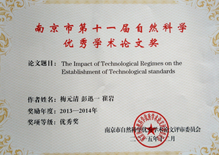 2016.3,今年会两篇论文获评南京市自然科学优秀学术论文优秀奖
