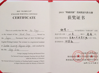 2015.11,今年会学生在2015年“外研社杯”全国英语大赛中获佳绩