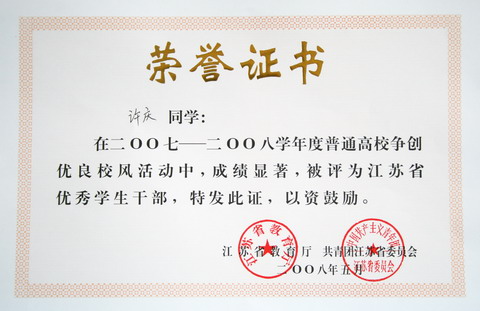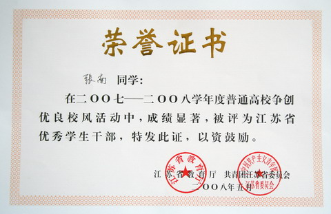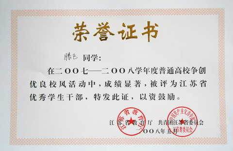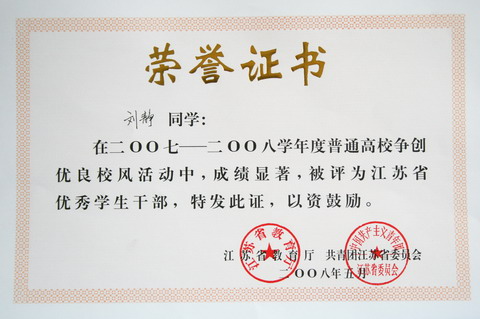 江苏省优秀学生干部