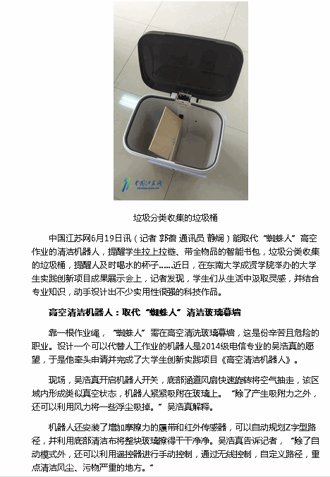 【中国江苏网】智能书包能避障防盗水杯能提醒饮水 大学生创意设计“挖”生活小智慧