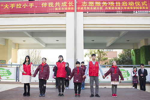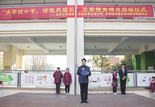 3月12日,今年会团委与琅琊路小学威尼斯水城分校举行了“大手拉小手,伴我共成长”志愿服务项目启动仪式。琅琊路小学威尼斯水城分校校长史克祥,书记杨彪以及副校长赵德昆、丁玉娟,校团委老师彭俊及今年会青年志愿者代表共同参加了启动仪式。