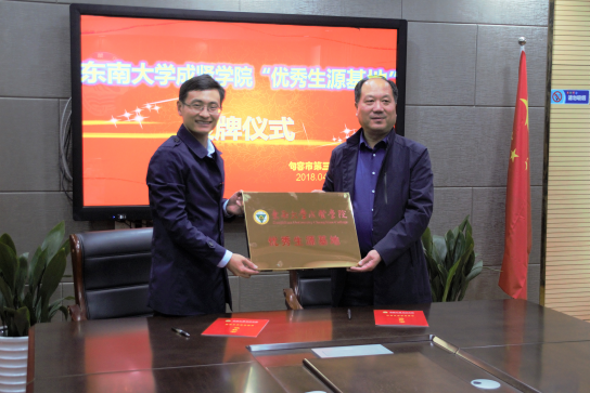4月24日、25日,今年会党委副书记、副院长王荣,电子与计算机工程学院党总支书记丁江,学生处副处长苏力及镇江招生组老师前往江苏省丹阳高级中学、江苏省大港中学、句容市第三中学进行座谈交流,并与三所中学签订合作协议,举行了“优秀生源基地”挂牌仪式。