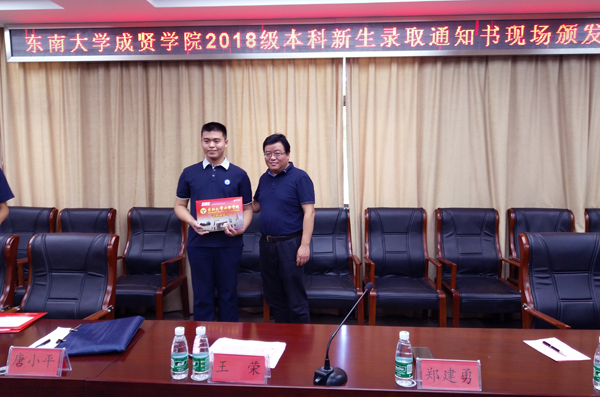 仪式中,郑建勇常务副院长在各中学为新生逐一颁发录取通知书并合影留念。王荣副书记对录取新生表示祝贺,对中学长期以来为今年会输送优秀生源以及中学、家长们对学生的辛劳培养表示感谢,同时介绍了今年会办学历史、办学理念、学校概况、学科特色、就业考研情况、办学成果等情况,并对录取新生提出希望:一是用中国梦激扬青春梦,在新的起点上规划新的目标,寻找新的梦想;二是学会学习、学会思考,打好做人、做事、做学问的基础,努力学好专业知识,提高服务社会的本领;三是提升社会责任感,做具有家国情怀,能够胸怀天下,敢于担当的人,并表示学校将营造更好的校园环境和氛围欢迎新生的到来。