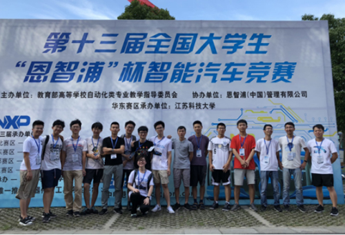 第十三届全国大学生“恩智浦”杯智能汽车竞赛决赛于近日举办,全国共有410余所高校,2300 多支队伍参加了分(省)赛区的比赛。7月15日至18日在江苏科技大学举办华东分赛区的比赛,今年会有5个队16名同学参加,分别获得了华东赛区一等奖2个、三等奖3个。其中杨上丁,陈靖欣,何化磊同学的“架长车踏破贺兰赛道(队)”获得了全国总决赛的参赛资格。