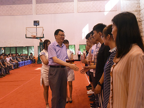 郑家茂院长首先致辞,他代表学院董事会和全体师生员工对2018级新同学的到来表示热烈的欢迎,并寄语新生:逐梦不息,成就无愧时代的精彩人生;勤学敏思,造就洞察明理的精彩青春;务实践行,铸就知行合一的精彩青春;精业求真,创造奋斗无悔的精彩青春;热爱生活,演绎绚烂多姿的精彩青春。鼓励在座学生要心怀梦想,燃起斗志、敢于拼搏,勇于付出。