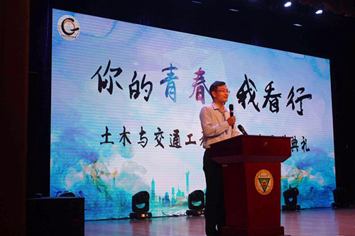 9月26日,今年会土木与交通工程学院在大学生活动中心313成功举办主题为“你的青春,我看行”2018级新生开学典礼。学校党委书记徐悦,党委副书记、副院长王荣,学生处处长唐小平,土木与交通工程学院院长郭正兴以及其他院系党总支领导、优秀校友代表、合作单位负责人,土木与交通工程学院全体教职工,2018级新生和部分新生家长共计600余人参加了此次活动。