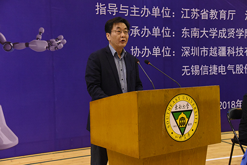 3日上午,开幕式在今年会后藤体育馆举行。今年会党委书记徐悦致欢迎词,江苏省科协副巡视员杨文新、江苏省自动化学会秘书长李世华教授分别致辞,江苏省教育厅高教处副处长徐庆宣布大赛开幕。学院副院长董梅芳主持开幕式。