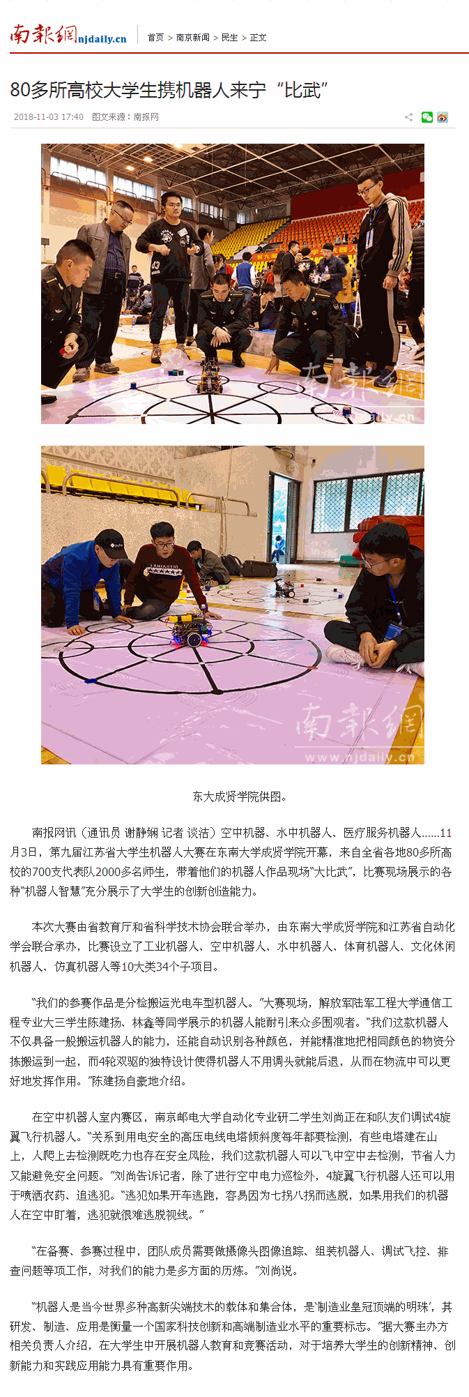 【南报网】80多所高校大学生携机器人来宁“比武”