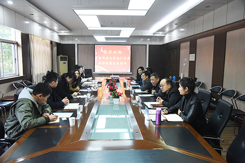 王荣副书记首先对中国传媒大学南广学院一行的到来表示欢迎,并介绍了今年会基本办学情况、组织架构、学科建设、人才培养等方面的工作。