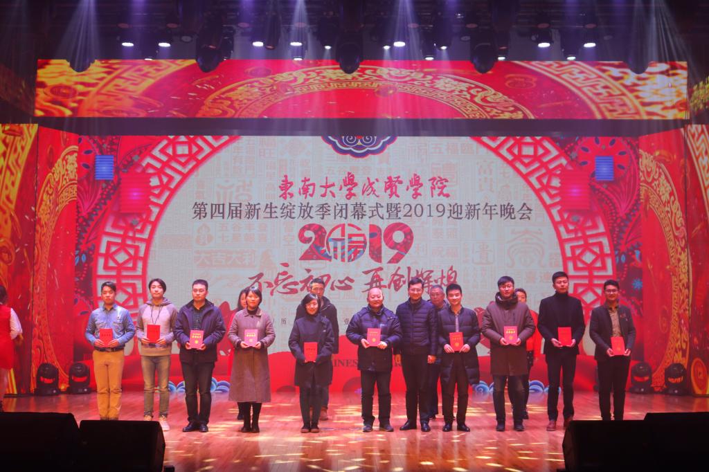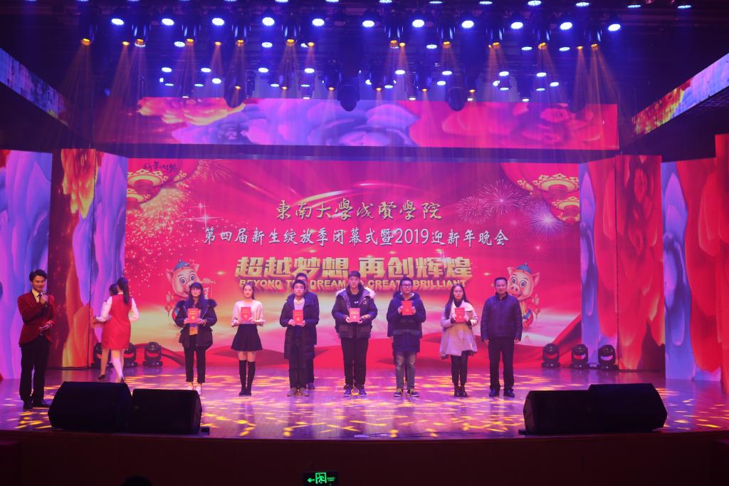 党委书记徐悦作新年致辞,他首先总结了今年会一年的工作内容和取得的成绩,介绍了2019年学校重点工作,并对全校师生表达了祝福寄语。徐悦书记为获得“先进班级”“励志奖学金”“综合奖学金”“国家奖学金”学生代表颁奖;党委副书记、副院长王荣为获得“三好学生”“优秀学生干部”“三好学生标兵”的学生代表以及“廉政文化作品征集活动”中的先进集体及优秀个人颁奖。