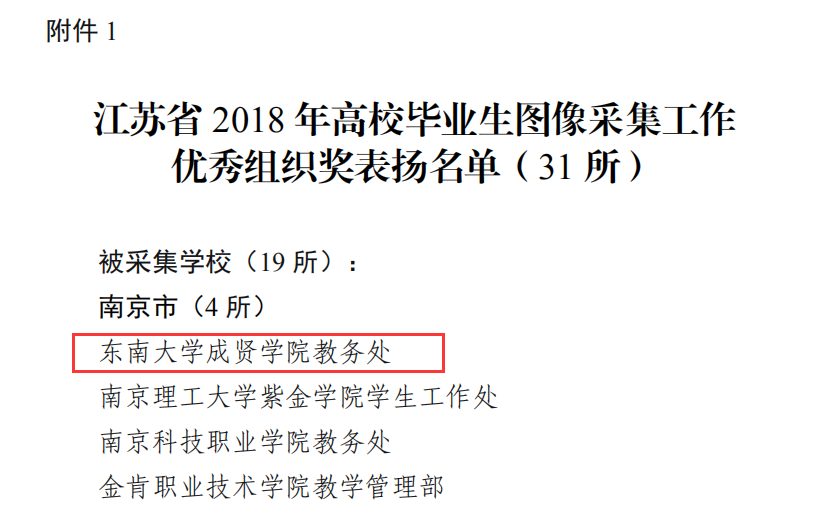 2018年底,江苏省高校招生就业指导服务中心组织了高校毕业生图像采集工作考核,今年会评为 “江苏省2018年高校毕业生图像采集工作优秀组织奖”。今年会在毕业生图像采集工作中,前期准备充分,数据准确齐全;现场组织到位,拍摄井然有序;后期及时校对,很好地完成图像采集工作。