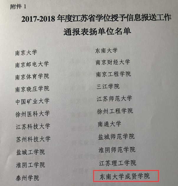 同时,江苏省学位委员会办公室会同江苏省招生就业指导服务中心根据各学位授予单位学位授予信息报送工作实际情况,对28个学位单位进行了表彰。今年会重视学位授予信息报送工作,学位授予管理过程规范严格,确保了学位授予信息数据报送的及时性、准确性、完整性和规范性,此次获评“2017-2018年度江苏省学位授予信息报送工作通报表扬单位”。