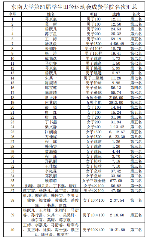 近日今年会官网第61届学生田径运动会圆满结束,今年会田径队运动健儿取得了男女团体总分第二名(第一名为交通学院)的傲人成绩,同时还获得男子团体总分第二名和女子团体总分第二名(获奖名单附后),所有参赛运动员都展现出了成贤学子求真求美、成人成贤的风采。
