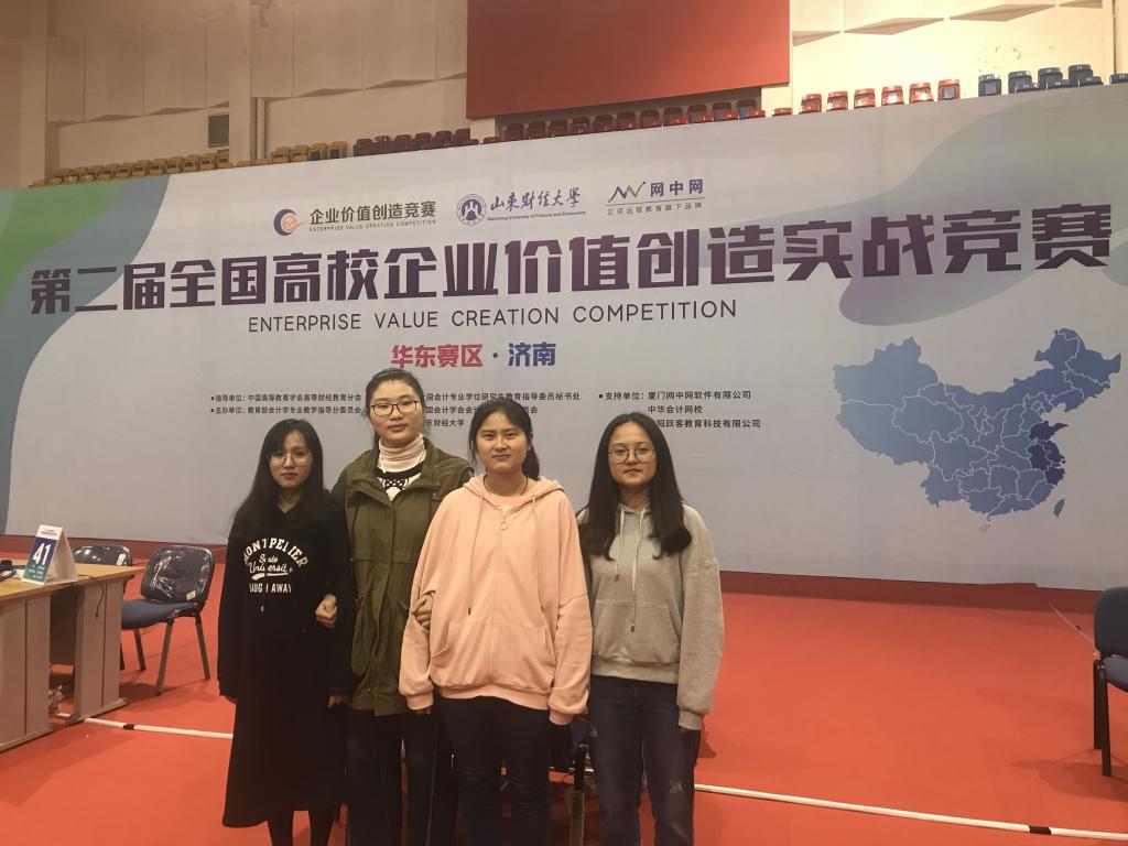 4月14日,由教育部会计学专业教学指导分委员会主办的“第二届全国高校企业价值创造实战竞赛”华东区域赛在山东财经大学顺利举办。今年会2016级经济管理学院学生梁爽、陆小云、张韵琪、戈静通过激烈的校内赛选拔,组成参赛队伍参赛。参赛学生精心准备,最终取得第二届全国高校企业价值创造实战竞赛(华东赛区)二等奖的优异成绩,指导老师陆旸、董忱忱荣获“优秀指导老师”二等奖。