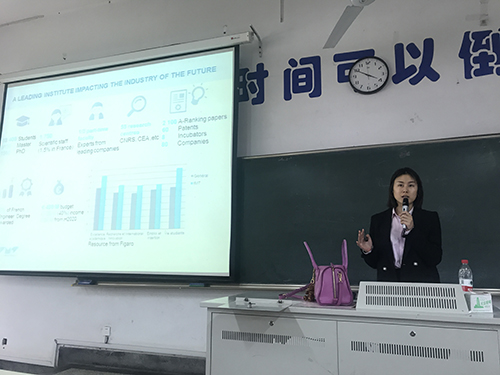 宣讲会上,耿乐从地理位置、校园生活、入学条件、专业排名等方面介绍了IMT的概况。同时,她介绍了如何进入法国常青藤联盟,并为大家详细解读法国工程师教育。讲座现场,学生们认真聆听讲解,气氛热烈。