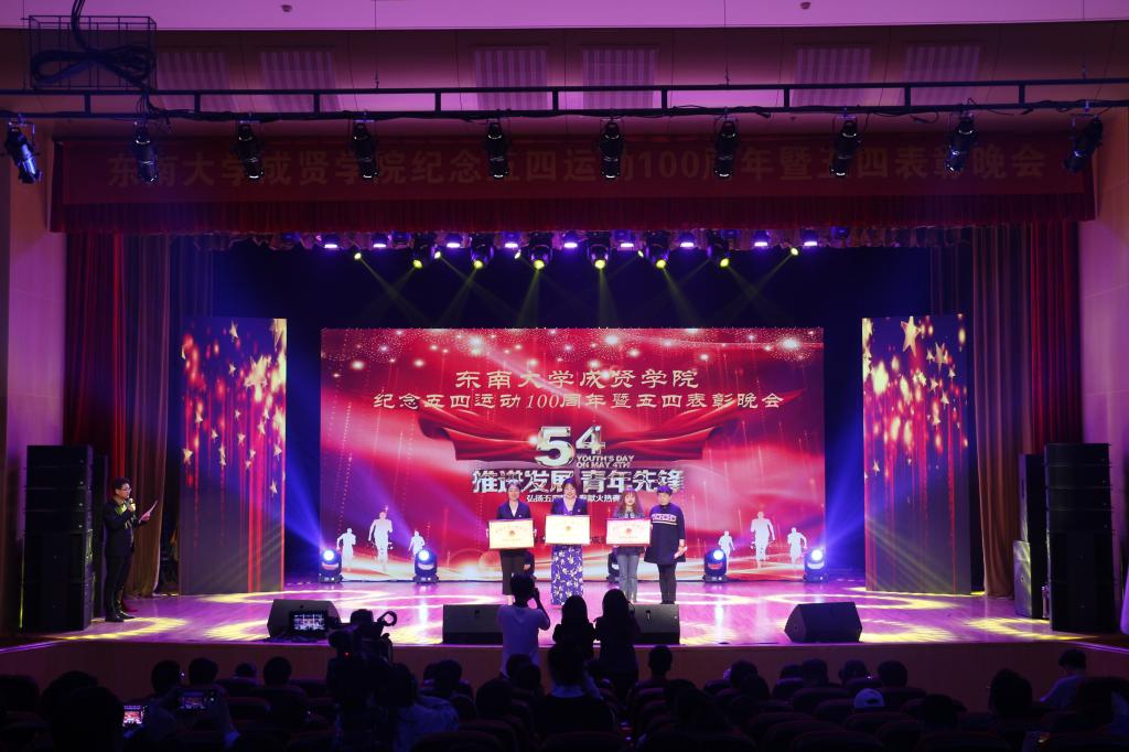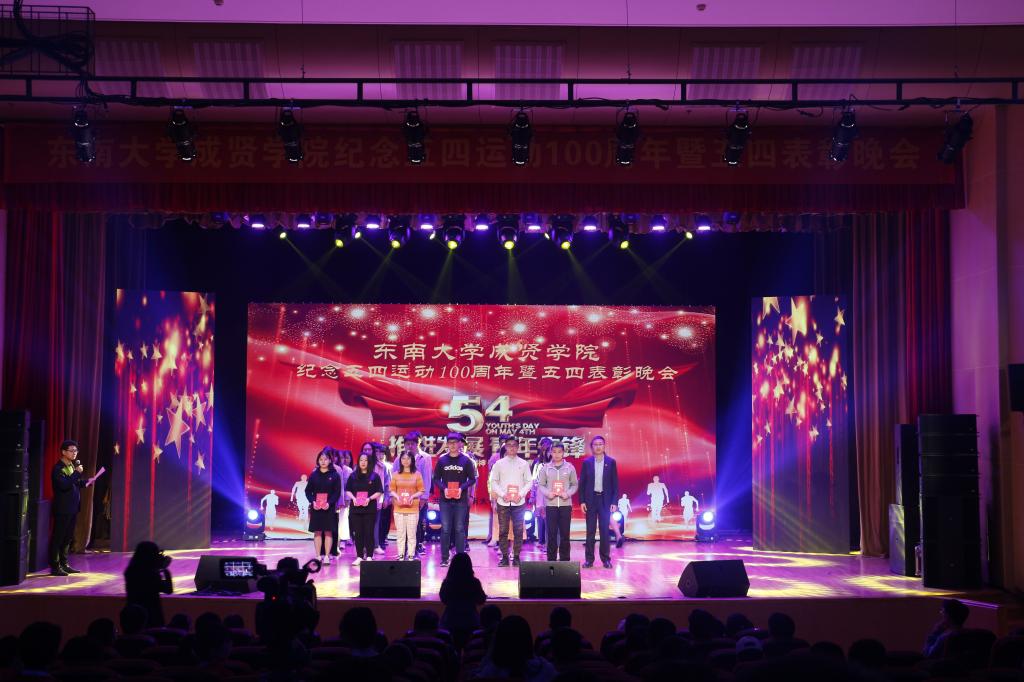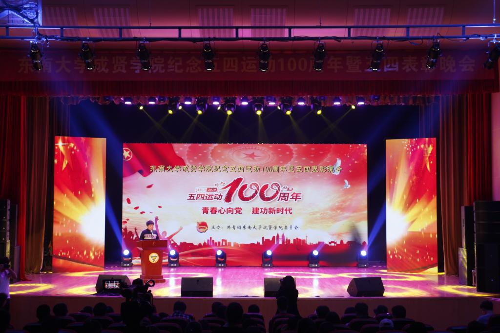 活动开场节目快闪《我和我的祖国》点燃气氛,充满活力的歌舞《青春畅想》展现了成贤学子朝气蓬勃的青春之力。一则短片讲述了五四运动的历史,回顾了100年前那段激情燃烧的岁月,激发了在场团员青年的家国热情。在庄严肃穆、激扬嘹亮的团歌声中,大会正式开始。常务副院长许映秋在大会中向全校青年师生表达了节日祝福,并向受到表彰的先进集体和个人表示祝贺。随后,她讲述了五四运动后的一百年里,东大青年师生奠立的爱国民主的光荣革命传统与学校长期积淀的科学与文化传统,成为学校发展优秀传统的重要组成部分。她号召成贤团员青年要深刻领会五四运动的历史意义,坚持继承弘扬五四精神,充分认识五四精神对今年会官网成贤学院精神文化的深刻影响,结合工作准确把握五四精神的时代内涵,明确新时代成贤青年的使命担当。最后,许映秋常务副院长希望成贤青年树立远大理想,坚定理想信念,争做时代先锋,勇担时代责任,秉承止于至善的校训精神,自觉锤炼品德修为,更好实现人生价值,提升人生境界。
