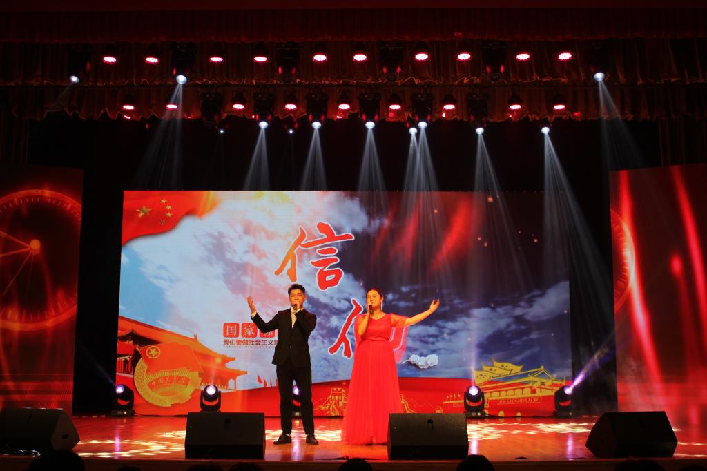 活动中,歌舞《我心似海洋》《我奋斗我幸福》、歌曲《信仰》、诗朗诵《可爱的中国》表达了对国家的热爱之情、坚定不移的理想信念和实现中华民族伟大复兴的中国梦而奋斗的决心,诠释了成贤人最美的青春活力与光芒,也吹响了成贤人新时代的奋斗号角。