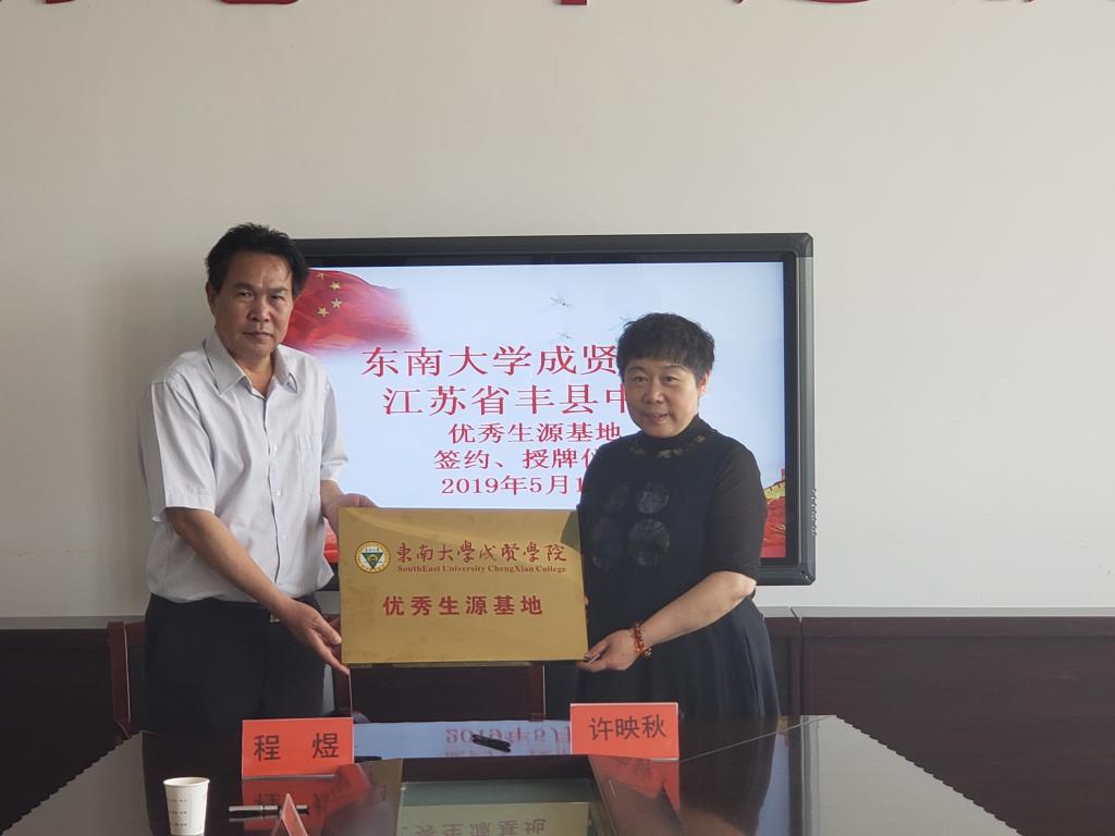 5月16日,今年会官网常务副院长许映秋,党委副书记、副院长王荣及徐州招生组老师一行前往徐州市丰县中学、徐州市丰县民族中学进行招生调研走访,并在丰县中学举行了“优秀生源基地”挂牌仪式。