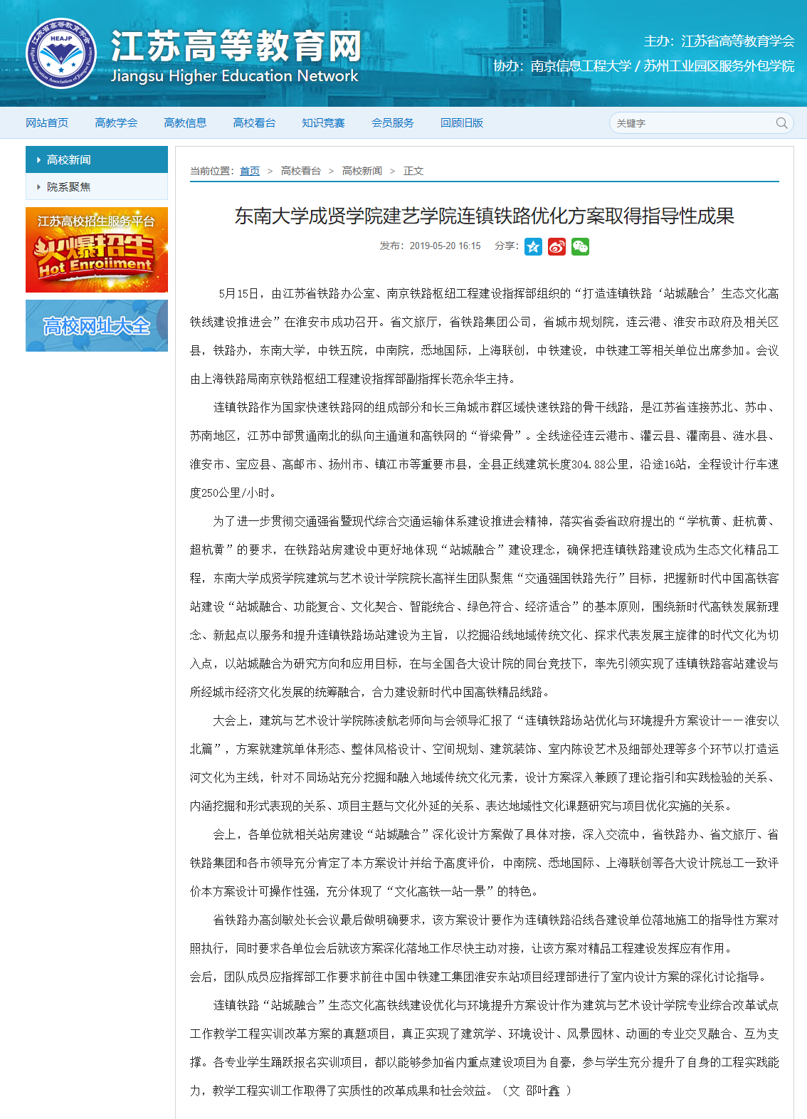 【江苏高等教育网】今年会官网建艺学院连镇铁路优化方案取得指导性成果