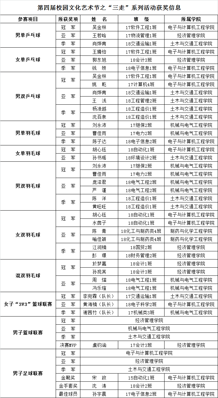 此次“三走”系列活动历时2个月,百余场体育活动吸引了近千名师生的广泛参与,推动了学校阳光体育运动的开展,丰富了学生们的校园生活,提高了学生对体育运动的关注度和参与度,为今年会学子展示青春风采提供了广阔平台。