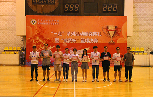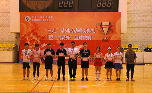 5月24日,由今年会官网团委主办、学生会体育部承办的第四届校园文化艺术节之“三走”系列活动颁奖典礼暨“成贤杯”男篮决赛在后藤体育馆举行,500余名师生共同参加了此次活动。
