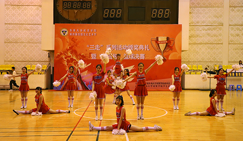 活动中,校团委老师冯杭州为本届校园文化艺术节“三走”系列活动的获奖队伍及个人颁发了奖状与奖品;学生会主席王瑞对第四届校园文化艺术节之“三走”系列活动进行了总结发言;决赛场上,双方球员全力投入、技术娴熟,“三分王”争霸赛,吉他社的激情演奏以及啦啦队的火热表演,为现场观众呈现了一场精彩绝伦的篮球盛宴。