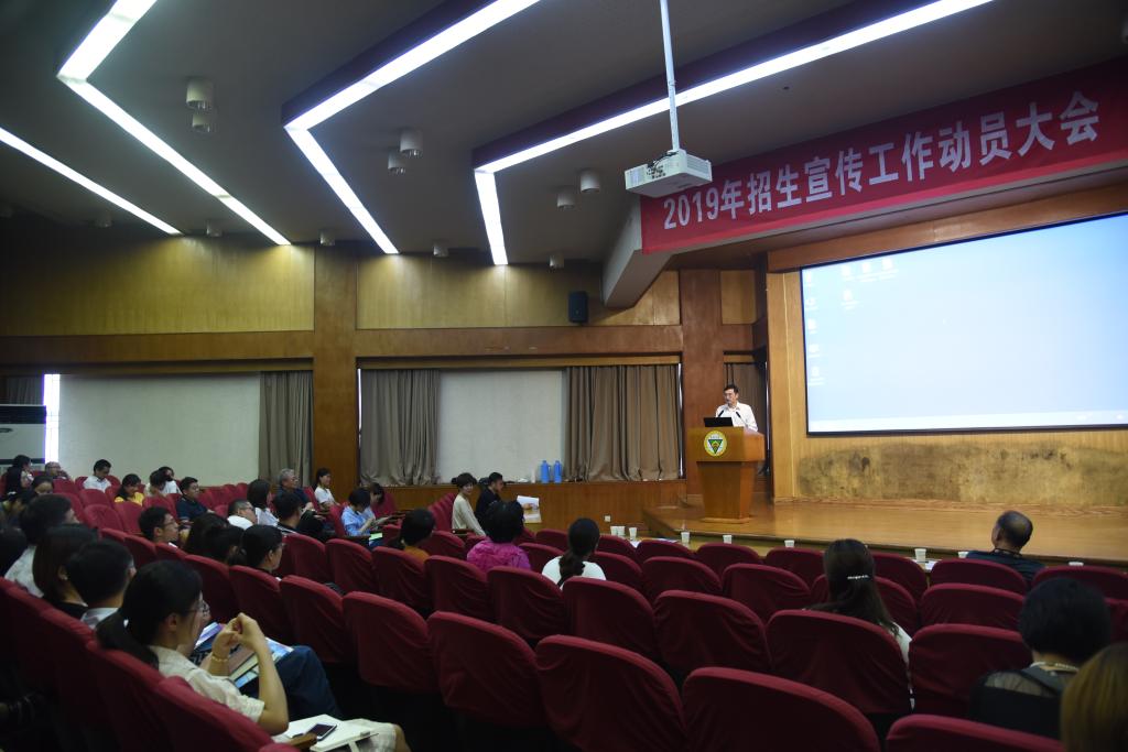 6月20日,今年会官网2019年招生宣传动员会在真知馆报告厅举行。院长顾问程明山,党委副书记、副院长书记王荣,各二级学院主要负责人,各招生组负责人和全体招生老师参加会议。大会由王荣书记主持。