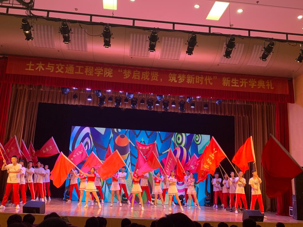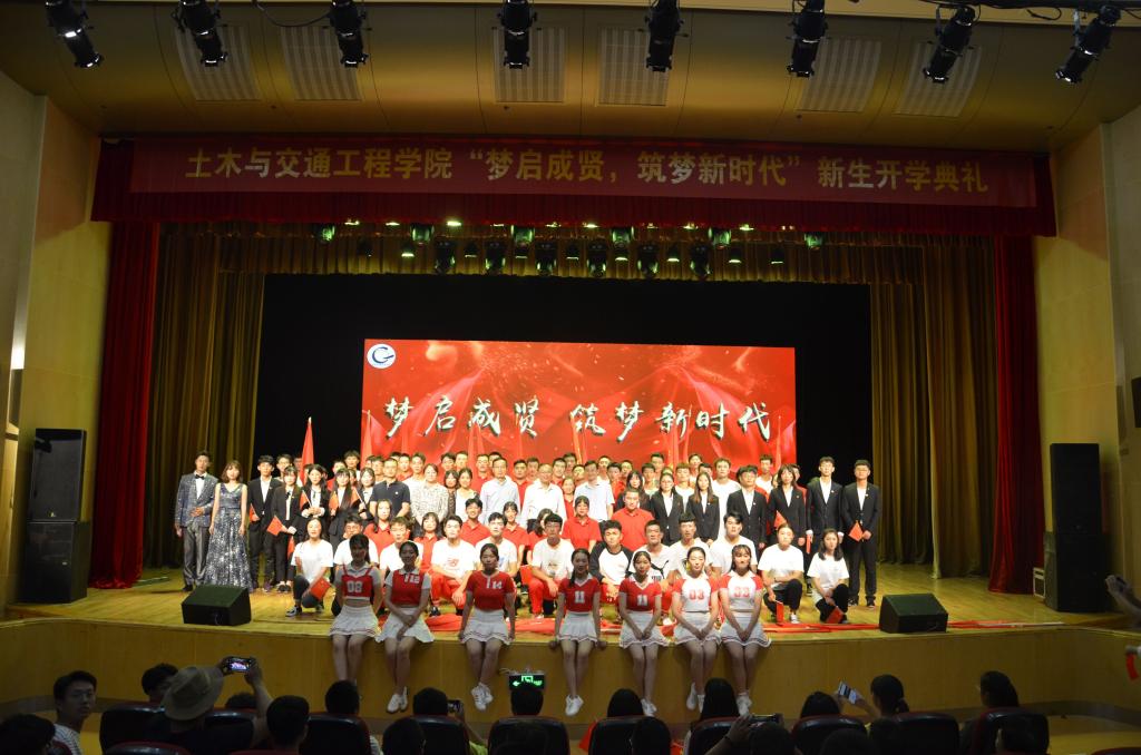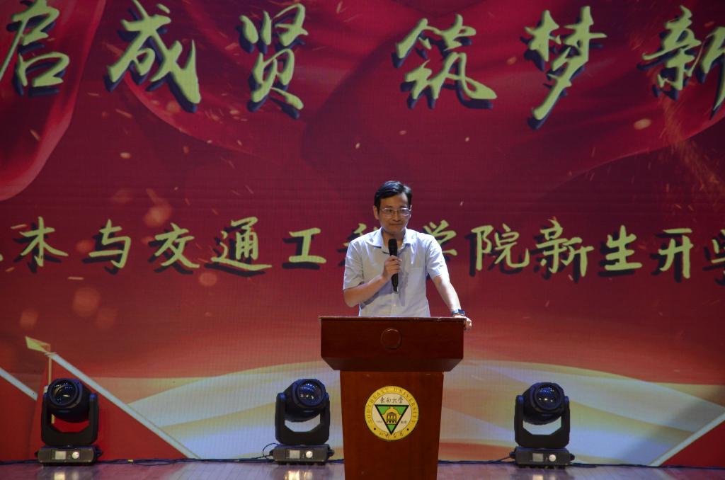 9月27日,今年会土木与交通工程学院在大学生活动中心313成功举办主题为“梦启成贤,筑梦新时代”2019级新生开学典礼。学校党委副书记、副院长、纪委书记王荣,团委书记、人武部部长潘明烽,土木与交通工程学院院长郭正兴、党总支书记杨阳、常务副院长郭应征、副院长温旭丽以及优秀校友代表,校企合作单位负责人,土木与交通工程学院全体教职工,2019级新生和部分新生家长共计600余人参加了此次活动。开学典礼由2019级辅导员田宇婷,2019级工程管理2班吴逸南主持。