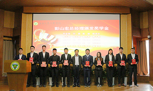 美达灌装机械有限公司总经理彭山宏颁发奖学金