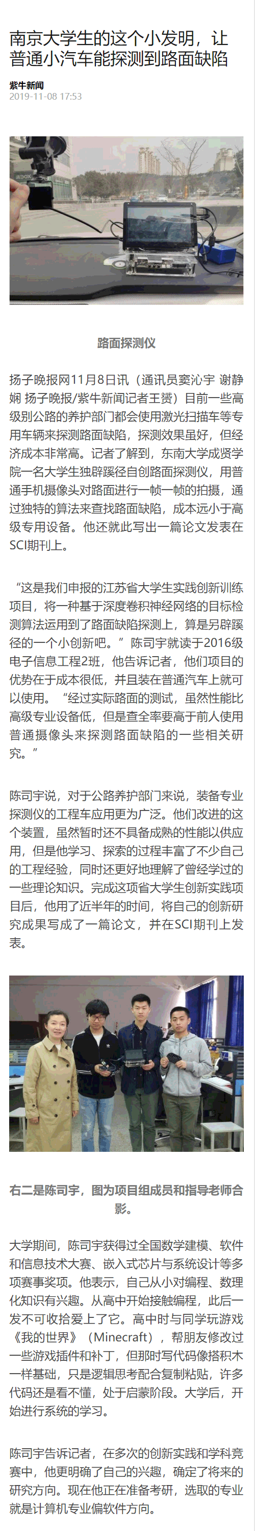 【扬子晚报网】南京大学生的这个小发明,让普通小汽车能探测到路面缺陷