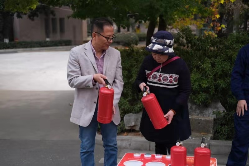 高空缓降逃生、火场实景灭火、应急处置救援等在新闻中看到的场景,在校园就可以亲身体验。11月8日,消防器材及实景体验活动在食堂前主干道开展。通过VR体感等现代信息技术,师生现场体验了不同场景、不同介质的灭火实操以及高空缓降逃生,通过真实的场景模拟,增强了师生的代入感与实操感,更好地掌握了消防器材的使用方法及处置初期火灾、逃生自救的能力。南京消防泰山中队的队员还现场介绍了部分应急救援设备。
