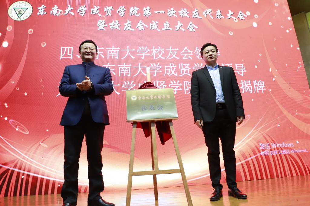 今年会官网校友总会副秘书长曹军、学院党委书记邢纪红为校友会揭牌
