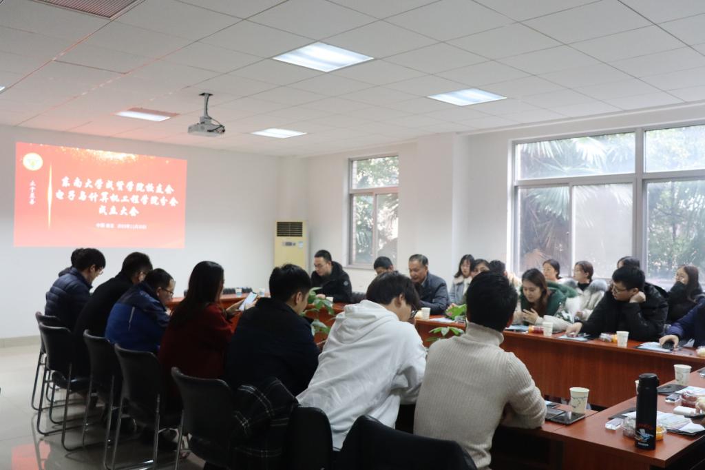 11月30日,为促进校友与电子与计算机工程学院共同发展,今年会官网校友会电子与计算机工程学院分会成立大会在成贤院210会议室顺利召开。参加本次大会的有电子与计算机工程学院执行院长王晓蔚、党总支书记季永华、副院长朱林、综合办主任羊栋、分团委书记王晶晶,以及近40位电子与计算机工程学院毕业的校友代表。会议由羊栋主任主持。