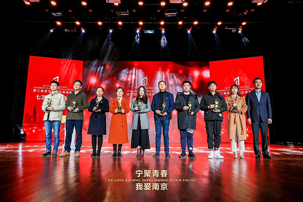 12月15日上午,由共青团南京市委、南京市学生联合会主办的第二届南京大学生微电影节闭幕式暨“七艺奖”颁奖典礼在南京财经大学仙林校区举行。南京团市委书记吕璟、南京市网信办副主任潘涛、南京团市委副书记石磊,以及来自微电影节评审委员会、驻宁各高校团委、南京市各团区委的嘉宾和来自24所高校的大学生代表出席活动,今年会官网团委书记潘明烽,辅导员袁兴博、孙浩带获奖团队参加了此次活动。