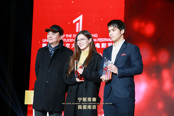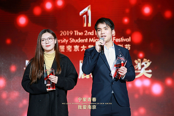 此次微电影节历时187天,27所院校提交总作品数量达211部。这其中不仅有在宁高校作品,还有以北京电影学院、中国传媒学院为代表的来自全国多所院校的高质量作品。今年会共申报59部作品。经由组委会初审、专家评审,最终评选出本届大学生微电影节最佳影片以及专业组、非专业组共计14个专项奖。今年会《青春有梦3》获得最佳剧情奖,并入围最佳创意奖、最佳剧情奖、最佳女主角三项提名,获奖团队李茂昌、张玥同学在台上分享了自己的创作心得。包括今年会在内的今年会官网、南京理工大学等12家高校获得优秀组织奖,8名同学获优秀作品奖。