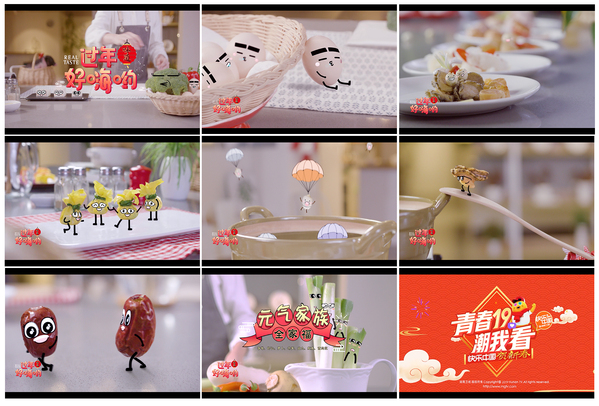 在刘刚、张庆、许佳佳、郭城等动画专业教师团队的共同努力下,师生们经过数月的精心设计,短片以美食题材塑造的IP形象片来传递春节期间不一样的快乐,经过多次测试修改后,动画视频最终以《全家福》《狮子头》两组系列的输出来传递频道的情绪和塑造其青春活力的气质。