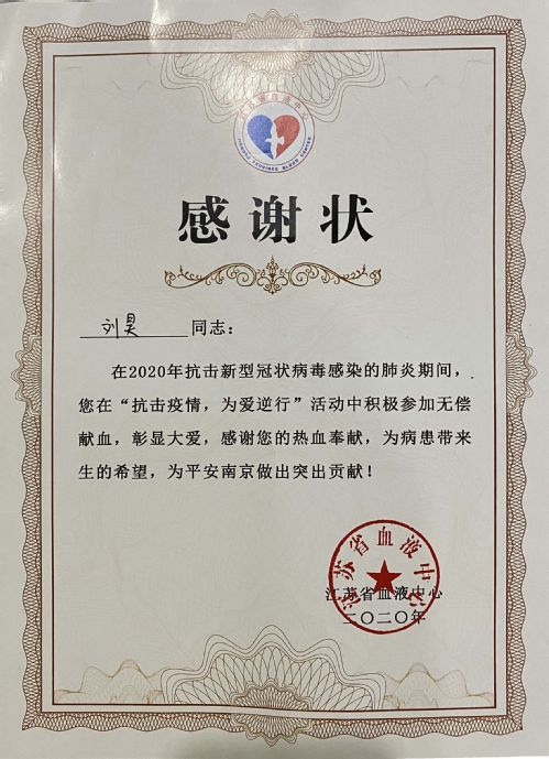 受疫情影响,医疗临床用血非常紧张。得知情况后,基础部肖小燕老师、建筑与艺术设计学院胡查剑同学毫不犹豫地走上献血车,撸起袖子献血。肖小燕老师表示,在全国抗击疫情的非常时期,尽管无法像“逆行者们”一样奋战在抗疫一线,但也希望能做一些力所能及的事情,用热血守护生命,尽绵薄心意。江苏省血液中心在来信中,对两位有责任心、有爱心的师生表示感谢。