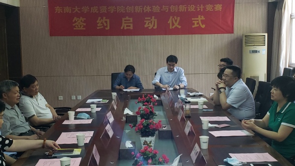 会上,江苏省教学名师钱瑞明教授介绍了近几年创新设计竞赛举办情况,该大赛是最具影响的全国大学生竞赛项目之一,目的在于培养大学生的创新设计能力、综合设计能力与协作精神。随后许映秋副院长和贾方总经理签订了战略合作协议,双方愿共同做大做强此项赛事,吸引、鼓励广大学生踊跃参加课外科技活动,为培养优秀创新人才创造条件。