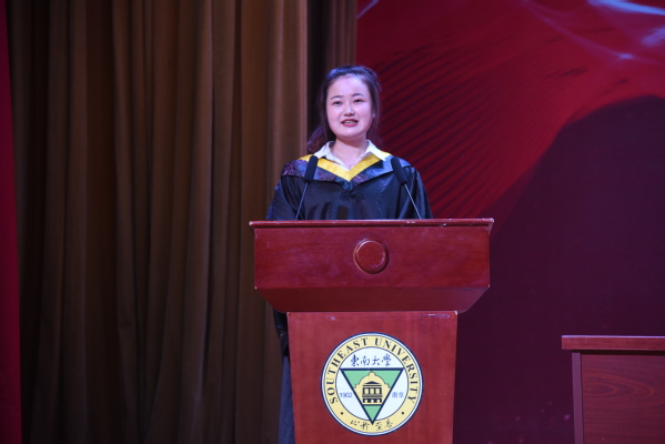 毕业生代表2016级药事管理1班高玉洁同学代表全校毕业生感谢母校为学生成长成才所提供的优良氛围与环境,感谢老师、辅导员等给予的关心指导,在疫情防控期间,时刻牵挂学生安全,更感谢在这样难忘的日子里,学校如期举办的“云毕业典礼”。四年来,在专业学习、学生活动、能力锻炼中收获的知识、锻炼的能力、明白的事理,都将化成无形的财富,让学子们在竞争中更添一份信心和勇气。