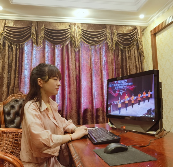 疫情阻隔身虽远,云端典礼心相连。毕业典礼正式开始前,滚动播放校团委和各二级学院制作的毕业季MV,在校生们还精心准备了诗歌朗诵。肆意飞扬的青春、熟悉的校园和同学、温馨的师长叮嘱、诚挚的学弟学妹祝福,一幕幕感人画面、一句句深情话语,让不少毕业生眼含热泪。