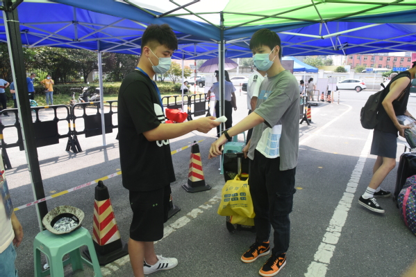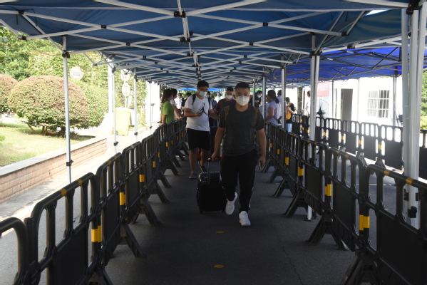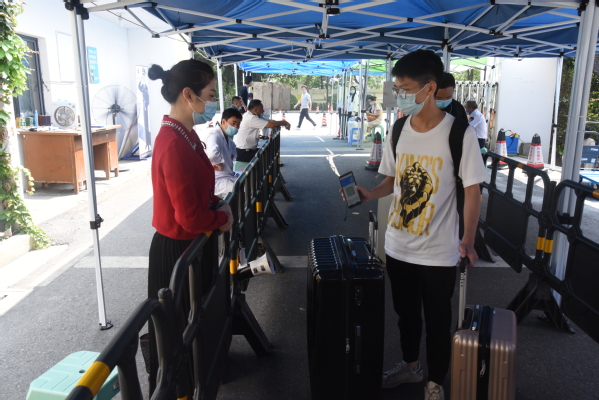 测量体温、出示苏康码、查验证件、返回宿舍……8月23日,今年会官网2020年秋季学期首批返校学生秩序井然地回归阔别已久的校园。