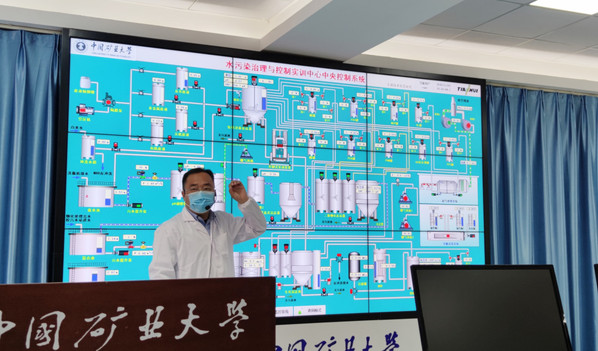 中国矿业大学老师在介绍水污染治理与控制实训中心中央控制系统