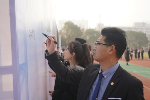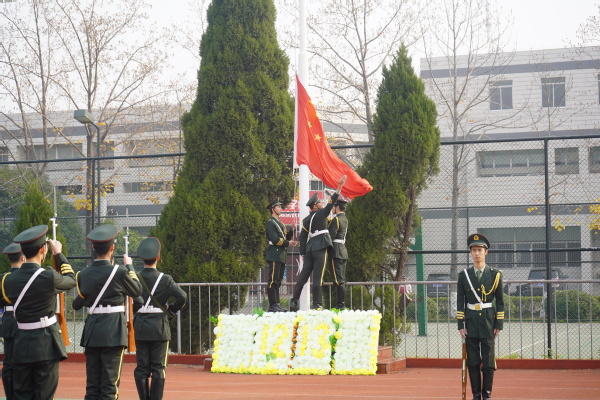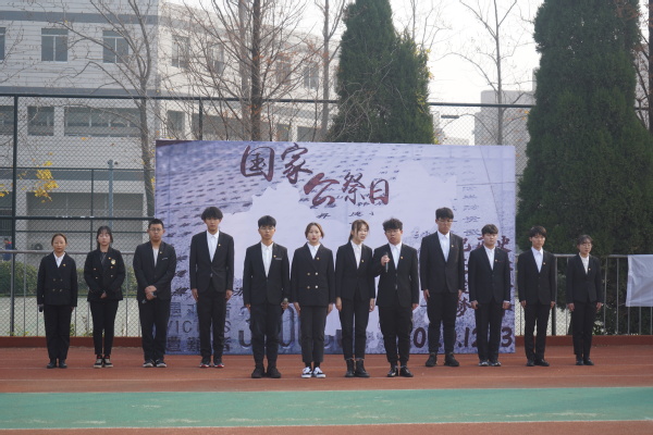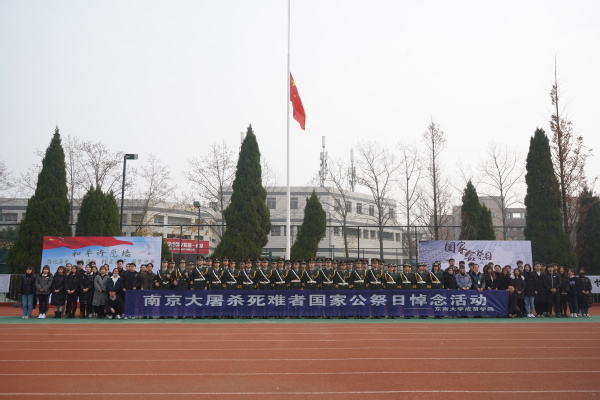 上午9时55分,公祭仪式开始,9时58分,奏唱《中华人民共和国国歌》并进行了庄严肃穆的升国旗、下半旗仪式。国歌唱毕,10时01分,防空警报声划破南京上空,全体师生为在南京大屠杀中不幸遇难的同胞们、为中国人民抗日战争胜利献出生命的革命英烈和民族英雄集体默哀。默哀毕,学生代表齐声诵读了《南京!南京!》,一句句饱含深情的话语让在场师生深切感受到了南京那段最为沉痛的历史。随后,师生代表依次向南京大屠杀死难者国家公祭日纪念海报献上白菊,并在和平许愿墙上郑重写下自己的哀思寄语和对和平的美好祈愿。最后,全体师生在《和平宣言》的祈祷声中向世界发出了庄严的和平誓言,铿锵有力,声声入耳,誓把屠刀化警钟,牢记逝名刻史鉴。