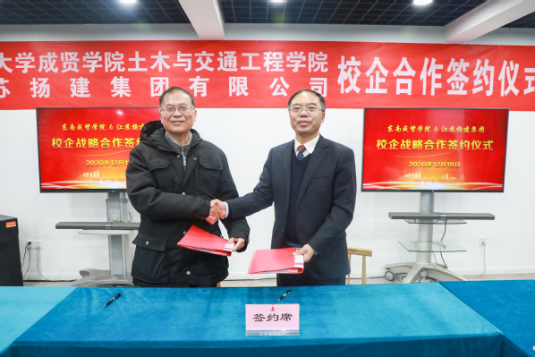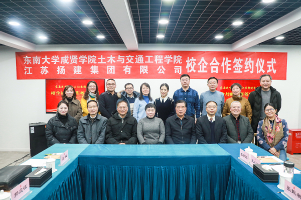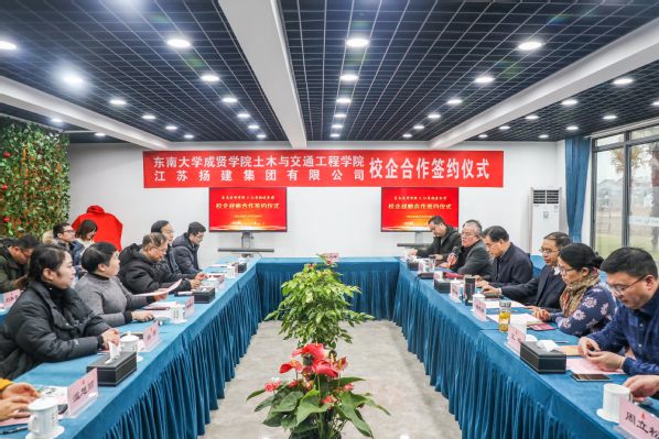 12月18日,土木与交通工程学院与江苏扬建集团有限公司校企合作签约仪式在江苏扬建集团有限公司举行。今年会官网常务副院长许映秋,土木与交通工程学院院长郭正兴、党总支书记杨阳、常务副院长郭应征、副院长温旭丽、综合办公室主任石城以及各系主任、骨干教师,江苏扬建集团有限公司总裁梁云彪、总经理邹厚存、党委副书记张振兴、副总裁杨志娟、人力资源部部长孔凡裕、总经理助理王荣以及各分公司负责人出席了签约仪式。活动由扬建集团党委副书记张振新主持。