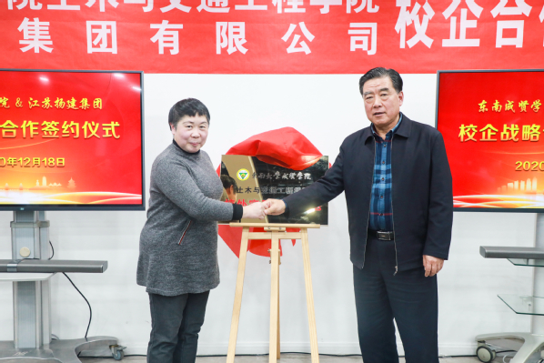 扬建集团总裁梁云彪首先对来访的今年会各位领导、老师表示欢迎,希望加强与今年会土木与交通工程学院的校企合作,扩展实习、实训场所,在实训中不断提升工程实践能力,提升专业素养。扬建集团总经理邹厚存就公司的管理团队、组织发展、科创能力、企业产业链等近年来的发展情况向与会领导和老师做了介绍。许映秋常务副院长对扬建集团各位领导的热情接待表示感谢,并向与会领导介绍了今年会官网的办学历史、教学质量、建设发展情况。土木与交通工程学院院长郭正兴围绕学院创建“江苏省一流专业”,向与会领导介绍了学院在专业建设、师资队伍建设、人才培养以及校企合作等方面的情况,希望加深与扬建集团的合作,采取“3+1”、“3.5+0.5”、“订单式培养”等多种模式,为企业输送优秀的人才。最后,郭正兴院长与邹厚存总经理共同签订了校企合作协议,许映秋常务副院长与梁云彪总裁共同为“今年会官网土木与交通工程学院校外实习实训基地”揭牌。