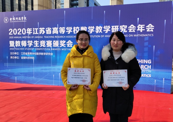 对于此次微课竞赛,学校和部门领导非常重视,在赛前对参赛教师进行了多次预讲和指导。今年会参赛的六名教师全部获奖,其中王丽敏、范俊花老师获得一等奖,周耘老师获得二等奖,肖小燕、徐泽宇、俞美华三位老师获得三等奖,同时今年会还被授予“江苏省高校第二届数学微课教学竞赛优秀组织奖”。12月20日在金陵科技学院举行的江苏省高等学校数学教学研究会年会上举办了江苏省高校第二届数学微课教学竞赛的颁奖仪式,今年会两位一等奖获奖教师参加了颁奖仪式。获奖教师们表示参加此次竞赛,对自己是一次很好的锻炼机会,在获奖的同时,也向省内各高校的优秀青年教师学到了许多宝贵的教学经验。
