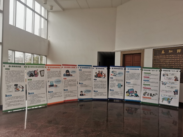 本学期开学来,校园电信网络诈骗案件形势严峻,学校保卫处、学工处和各二级学院密切配合,多措并举,采取开展安全教育讲座、关注反诈微信公众号、发放宣传资料、张贴宣传海报、召开主题班会等形式,积极宣传防骗知识,做到知识传授全覆盖、防诈骗宣传无死角。