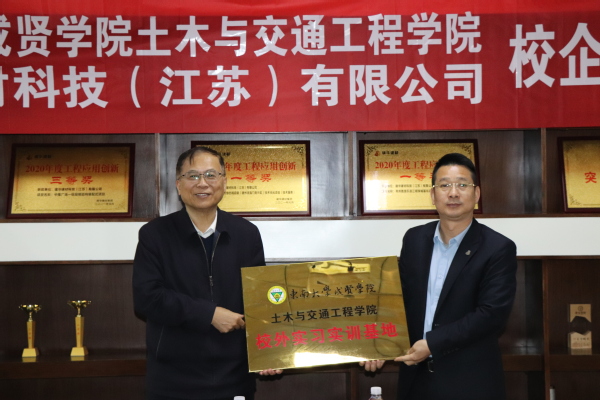 郭正兴院长与欧阳小星总经理共同为土木与交通工程学院校外实习实训基地揭牌